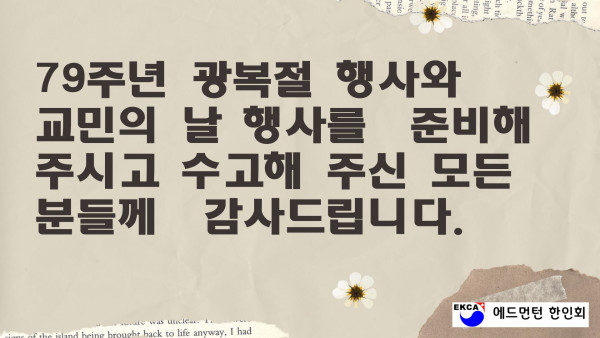 2024 8.15 광복절 기념식 및 교민의 날 행사 작성자 정보 운영자 작성 작성일 2026.04.11 22:31 컨텐츠 정보 21 조회 목록 본문 SNS 공유 관련자료 링크 http://www.edmontonkorean.org/new/2024-8-15-%ea%b4%91%eb%b3%b5%ec%a0%88-%ea%b8%b0%eb%85%90%ec%8b%9d-%eb%b0%8f-%ea%b5%90%eb%af%bc%ec%9d%98-%eb%82%a0-%ed%96%89%ec%82%ac/ 9 회 연결 댓글 0 등록된 댓글이 없습니다. 로그인한 회원만 댓글 등록이 가능합니다. 목록