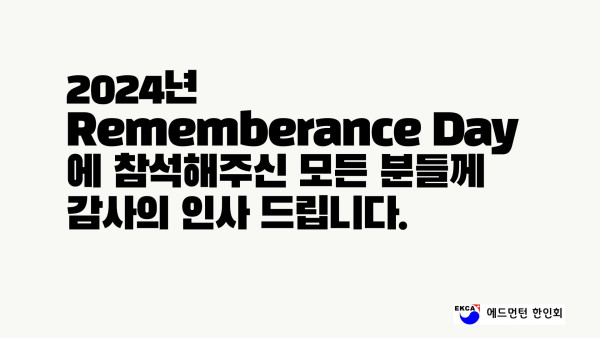 2024 Rememberance Day 작성자 정보 운영자 작성 작성일 2026.04.11 22:31 컨텐츠 정보 23 조회 목록 본문 SNS 공유 관련자료 링크 http://www.edmontonkorean.org/new/2024-rememberance-day/ 8 회 연결 댓글 0 등록된 댓글이 없습니다. 로그인한 회원만 댓글 등록이 가능합니다. 목록