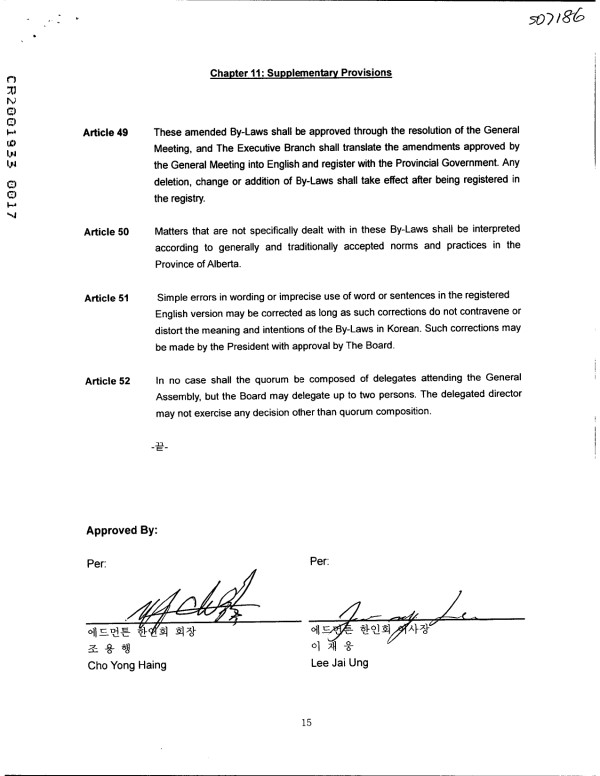 에드먼턴 한인회 회칙(최신 개정판) 작성자 정보 운영자 작성 작성일 2026.04.11 22:31 컨텐츠 정보 37 조회 목록 본문 최신 에드먼턴 한인회칙 영문 & 한글 버젼입니다. SNS 공유 관련자료 링크 http://www.edmontonkorean.org/new/%ec%97%90%eb%93%9c%eb%a8%bc%ed%84%b4-%ed%95%9c%ec%9d%b8%ed%9a%8c-%ed%9a%8c%ec%b9%99%ec%b5%9c%ec%8b%a0-%ea%b0%9c%ec%a0%95%ed%8c%90/ 13 회 연결 댓글 0 등록된 댓글이 없습니다. 로그인한 회원만 댓글 등록이 가능합니다. 목록