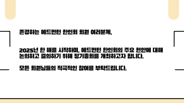2025 에드먼턴 한인회 정기총회 공고 작성자 정보 운영자 작성 작성일 2026.04.11 22:31 컨텐츠 정보 57 조회 목록 본문 SNS 공유 관련자료 링크 http://www.edmontonkorean.org/new/2025-%ec%97%90%eb%93%9c%eb%a8%bc%ed%84%b4-%ed%95%9c%ec%9d%b8%ed%9a%8c-%ec%a0%95%ea%b8%b0%ec%b4%9d%ed%9a%8c-%ea%b3%b5%ea%b3%a0/ 16 회 연결 댓글 0 등록된 댓글이 없습니다. 로그인한 회원만 댓글 등록이 가능합니다. 목록