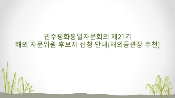 민주평화통일자문회의 제21기 해외 자문위원 후보자 신청 안내(재외공관장 추천)