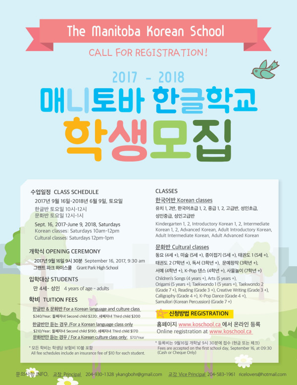 매니토바 한글학교 새학기 등록신청 작성자 정보 매니토바 한인회 작성 작성일 2017.06.27 00:00 컨텐츠 정보 47 조회 목록 관리 글수정 글삭제 본문 SNS 공유 관련자료 댓글 0 등록된 댓글이 없습니다. 로그인한 회원만 댓글 등록이 가능합니다. 목록 관리 글수정 글삭제