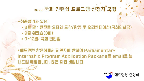 2024 국회 인턴십 프로그램 신청자 모집 작성자 정보 운영자 작성 작성일 2026.04.11 22:31 컨텐츠 정보 23 조회 목록 본문 SNS 공유 관련자료 링크 http://www.edmontonkorean.org/new/2024-%ea%b5%ad%ed%9a%8c-%ec%9d%b8%ed%84%b4%ec%8b%ad-%ed%94%84%eb%a1%9c%ea%b7%b8%eb%9e%a8-%ec%8b%a0%ec%b2%ad%ec%9e%90-%eb%aa%a8%ec%a7%91/ 9 회 연결 댓글 0 등록된 댓글이 없습니다. 로그인한 회원만 댓글 등록이 가능합니다. 목록