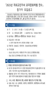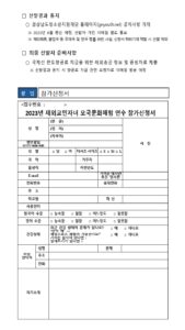 *2023년 재외교민자녀 모국문화체험 연수 참가자 모집* 작성자 정보 운영자 작성 작성일 2026.04.11 22:31 컨텐츠 정보 31 조회 목록 본문 ♦2023년 재외교민 자녀 모국 문화 체험 연수 참가자 모집에 관한 신청서(한글 버젼과 영문 버젼)는 에드먼턴 한인회 이메일(edmontonkorean@hotmail.com)로 문의 주시면 빠른 시일내로 발송 드리겠습니다. SNS 공유 관련자료 링크 http://www.edmontonkorean.org/new/2023%eb%85%84-%ec%9e%ac%ec%99%b8%ea%b5%90%eb%af%bc%ec%9e%90%eb%85%80-%eb%aa%a8%ea%b5%ad%eb%ac%b8%ed%99%94%ec%b2%b4%ed%97%98-%ec%97%b0%ec%88%98-%ec%b0%b8%ea%b0%80%ec%9e%90-%eb%aa%a8%ec%a7%91/ 11 회 연결 댓글 0 등록된 댓글이 없습니다. 로그인한 회원만 댓글 등록이 가능합니다. 목록
