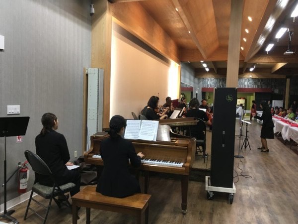올해 결성된 스윙 앙상블(SWING Ensemble – String and Wind in God)이 처음 한인회관에서 공연을 해주었다. 스윙 앙상블은 이윤주 선생을 지휘자로 모시고 피아노반주자와 박태규씨를 포함 바이올린 연주자 3분, 문순원 전 장학재단 이사장이 참여한 첼로 2분, 전원 여성인 플룻 3분, 클라리넷 1분, 그리고 객원 가수 1분으로 구성된 에드먼턴 최초 한인 클래식 연주단이다.