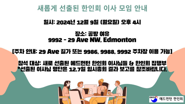 새롭게 선출된 한인회 이사 모임 안내 작성자 정보 운영자 작성 작성일 2026.04.11 22:31 컨텐츠 정보 32 조회 목록 본문 SNS 공유 관련자료 링크 http://www.edmontonkorean.org/new/%ec%83%88%eb%a1%ad%ea%b2%8c-%ec%84%a0%ec%b6%9c%eb%90%9c-%ed%95%9c%ec%9d%b8%ed%9a%8c-%ec%9d%b4%ec%82%ac-%eb%aa%a8%ec%9e%84-%ec%95%88%eb%82%b4/ 10 회 연결 댓글 0 등록된 댓글이 없습니다. 로그인한 회원만 댓글 등록이 가능합니다. 목록