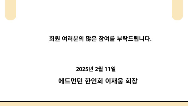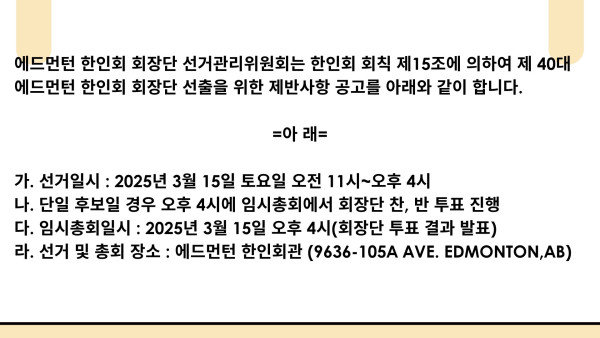 제 40 대 에드먼턴 한인회 회장단 선거 및 임시 총회 공고