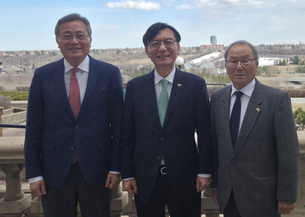 이석로 캐나다 한인회 총연회장, 임기모 주캐나다 대사, 이재웅 에드먼턴 한인회장