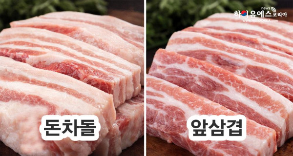 - 앞삼겹: 지방과 살코기 비율이 균형적인 부위